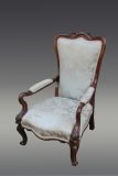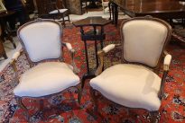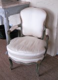 Pair of Louis XV Style Green Painted & Upholstered Fauteuils