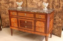 Louis XVI Style Kingwood Tulipwood & Parquetry Marble Top Commode
