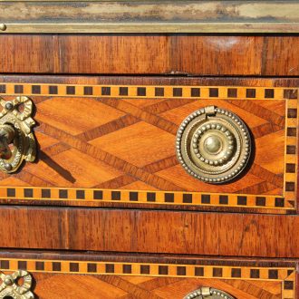 Impressed marks on the carcasses can reveal a maker often on the top of a drawer or door. Maker’s stamps on furniture were employed far more on the continent that ever in Britain. I find it quite disappointing seeing fabulous pieces but we have no idea what skilled craftsman made the piece.
