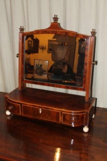 19th Century Mahogany, Ebony & Boxwood Lined Dressing Table Mirror