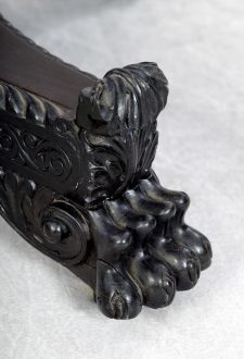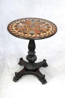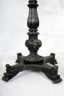 Early 19th century solid ebony colonial small centre table with exquisitely executed carving, with specimen marble top.