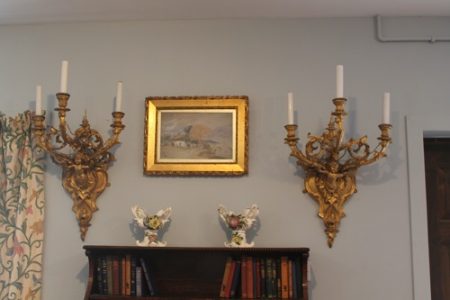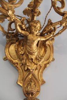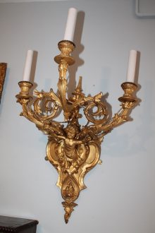 Four highly decorative Gilt Wall Sconces which are wired for modern electricity.