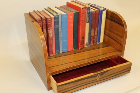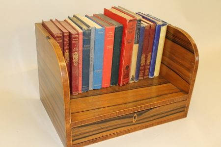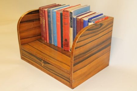 All items can be viewed in person by appointment - please contact us to arrange a viewing. Coromandel Book Trough Stock No. - 444 Coromandel book trough with boxwood stringing and a lower drawer with red lining.L34cm D25cm H23cm Price: £260