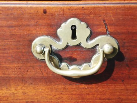 The larger drawers are solid mahogany with moulded edge and old linings.