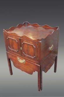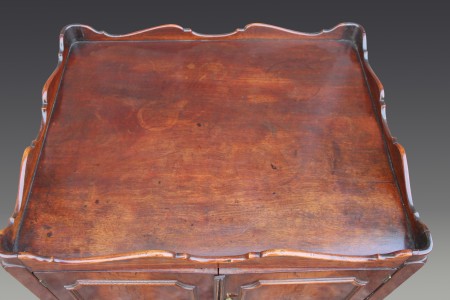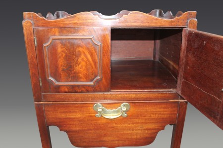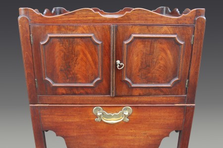Mahogany Georgian tray topped commode with decorative shaped edge, two panelled doors with beading and lower commode drawer now converted. Good depth of colour.