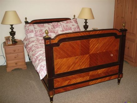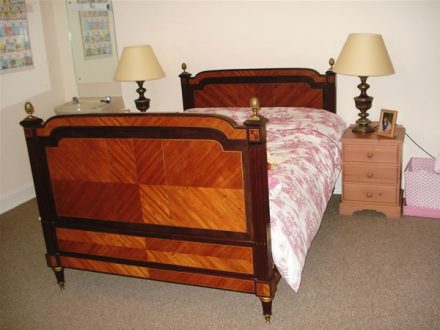 Inlaid French Double Bed Veneered with Purple Heart & Kingwood