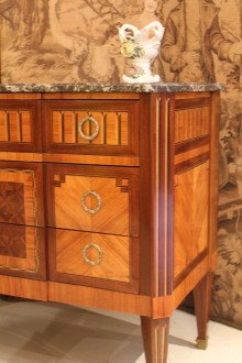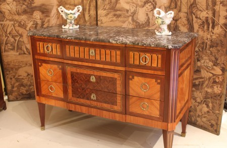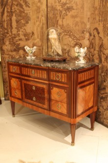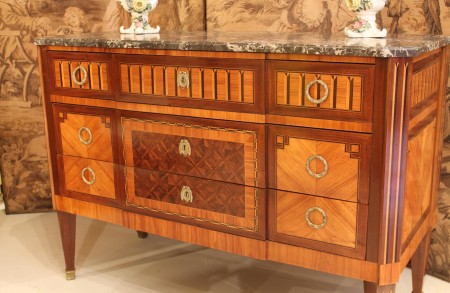 Louis XVI Style Kingwood Tulipwood & Parquetry Marble Top Commode