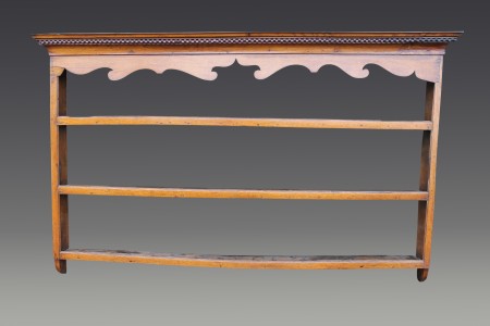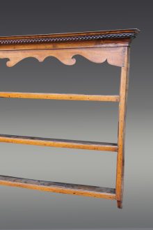 All items can be viewed in person by appointment - please contact us to arrange a viewing. Oak 18 century plate rack Stock No. - 498 Oak 18 century plate rack with decorative shaped top and detailed cornice, three shelves.W 181cmH 110cm Price: £280