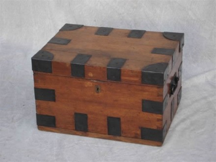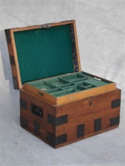 All items can be viewed in person by appointment - please contact us to arrange a viewing. Oak Cutlery Box with Metal Banding Stock No. - 139 Oak cutlery box with metal banding and carrying handles. Fully fitted with two lift out green covered baize trays. W 43cm D 36cm H 30cmC 1850 Price: £145