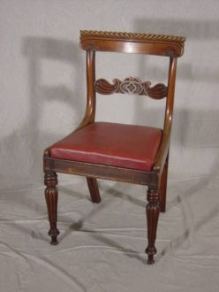 All items can be viewed in person by appointment - please contact us to arrange a viewing. Oak Single Side Chair Stock No. - 52 Oak single side chair with gadrooned top rail and carved horizontal back bar. Turned front reeded leg.C1850 Price: £95
