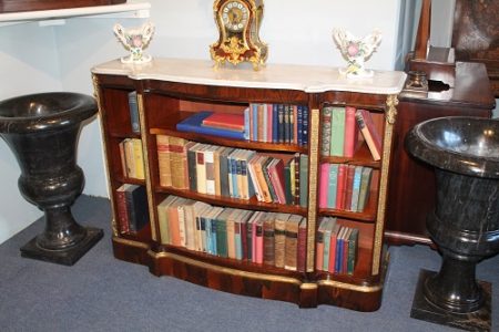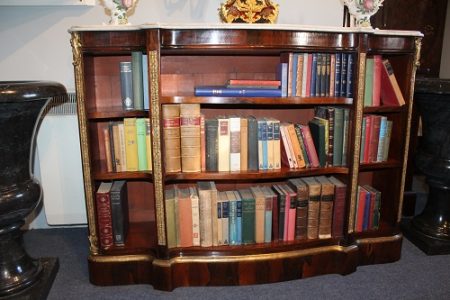 All items can be viewed in person by appointment - please contact us to arrange a viewing. Rosewood Marble Topped open bookcase Stock No. - 583 Rosewood Marble Topped open bookcaseW 130cm D 38cm H 94cm Price: £1650